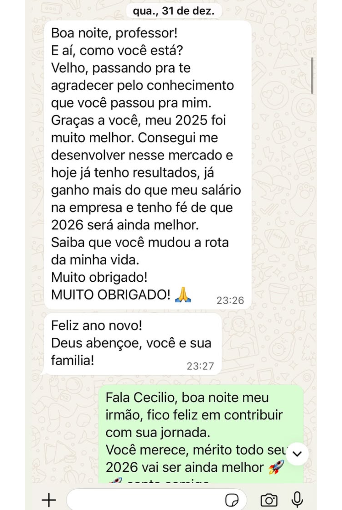 Abaixo, vou te mostrar alguns resultados meus e de mentorados, para que você tenha uma ideia mais clara do que esperar.